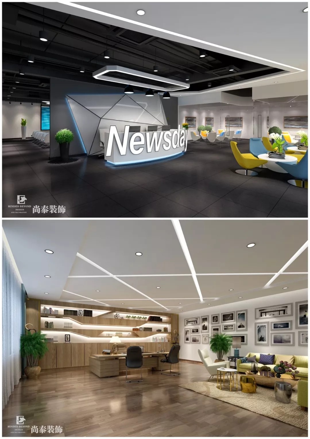 設(shè)計(jì)理念:本案是舊廠房改造,用簡(jiǎn)潔硬朗的線條組合成角度不同的邊、角,