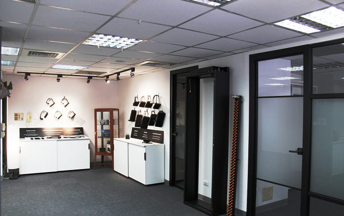 主題墻以深灰色為底搭配純白壓克力字體,造價較低但效果十足,減少固定式的展架,節(jié)省裝修經(jīng)費、并把視覺的重點放在公司的產(chǎn)品上,讓產(chǎn)品變成空間的裝飾品。公區(qū)域為產(chǎn)品展示空間,為讓產(chǎn)品聚焦,因此不多做其它裝飾。