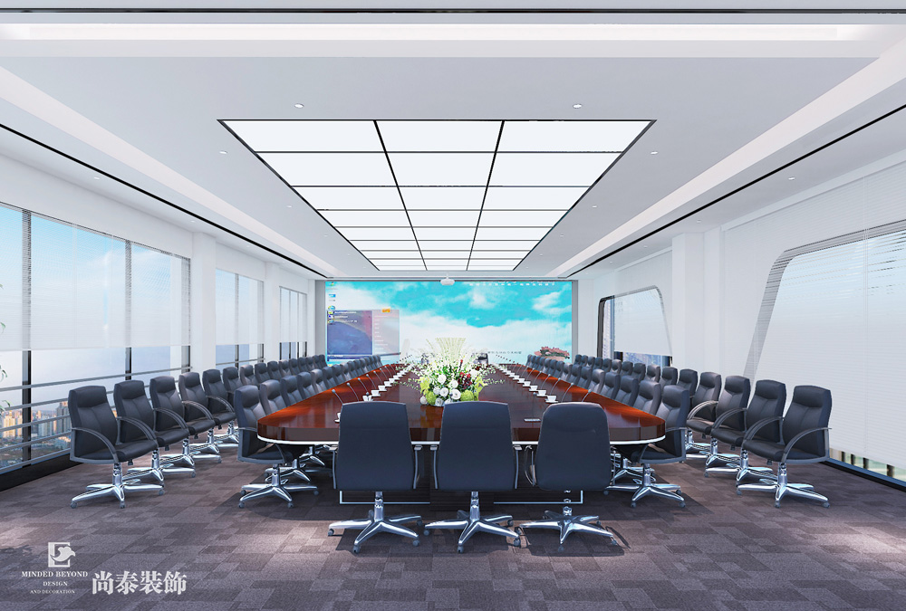 會議室作為一個莊重莊嚴的場所,需要嚴謹?shù)臍夥?,配合上大氣以及科技元素,塑造出一種科技時尚的會議室。