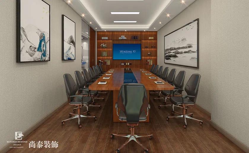 會(huì)議室大量使用木色,同時(shí)以中式藝術(shù)畫點(diǎn)綴,中和木色帶來的視覺上的沉悶感,使空間既不會(huì)過于肅穆又不會(huì)過于張揚(yáng)。