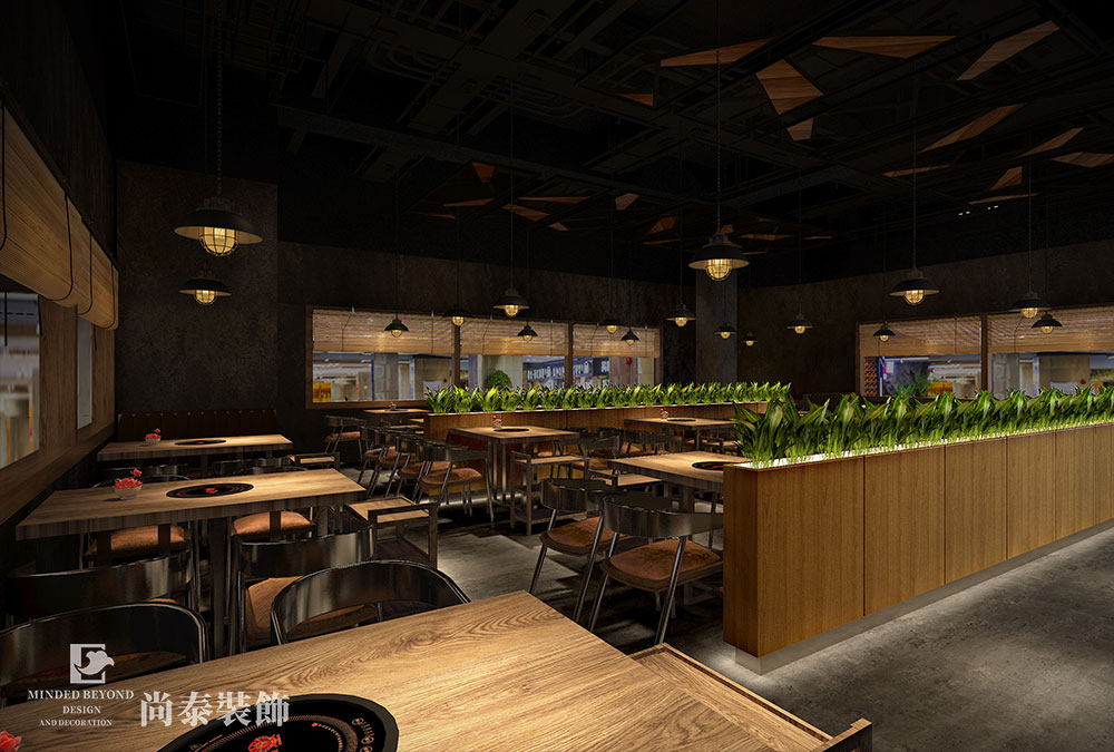 牛制灶牛肉火鍋店主營潮汕牛肉火鍋,設(shè)計時打破傳統(tǒng)餐飲裝修風格,摒棄傳統(tǒng)餐飲玻璃幕墻,采用鐵板以及舊色藝術(shù)漆進行整體規(guī)劃,采用切割的藝術(shù)手法進行鐵藝、造型切割表達,突出店鋪工業(yè)風格。