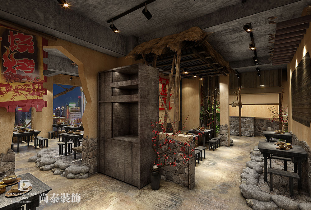 燒烤店裝修風(fēng)格效果圖設(shè)計(jì)理念: